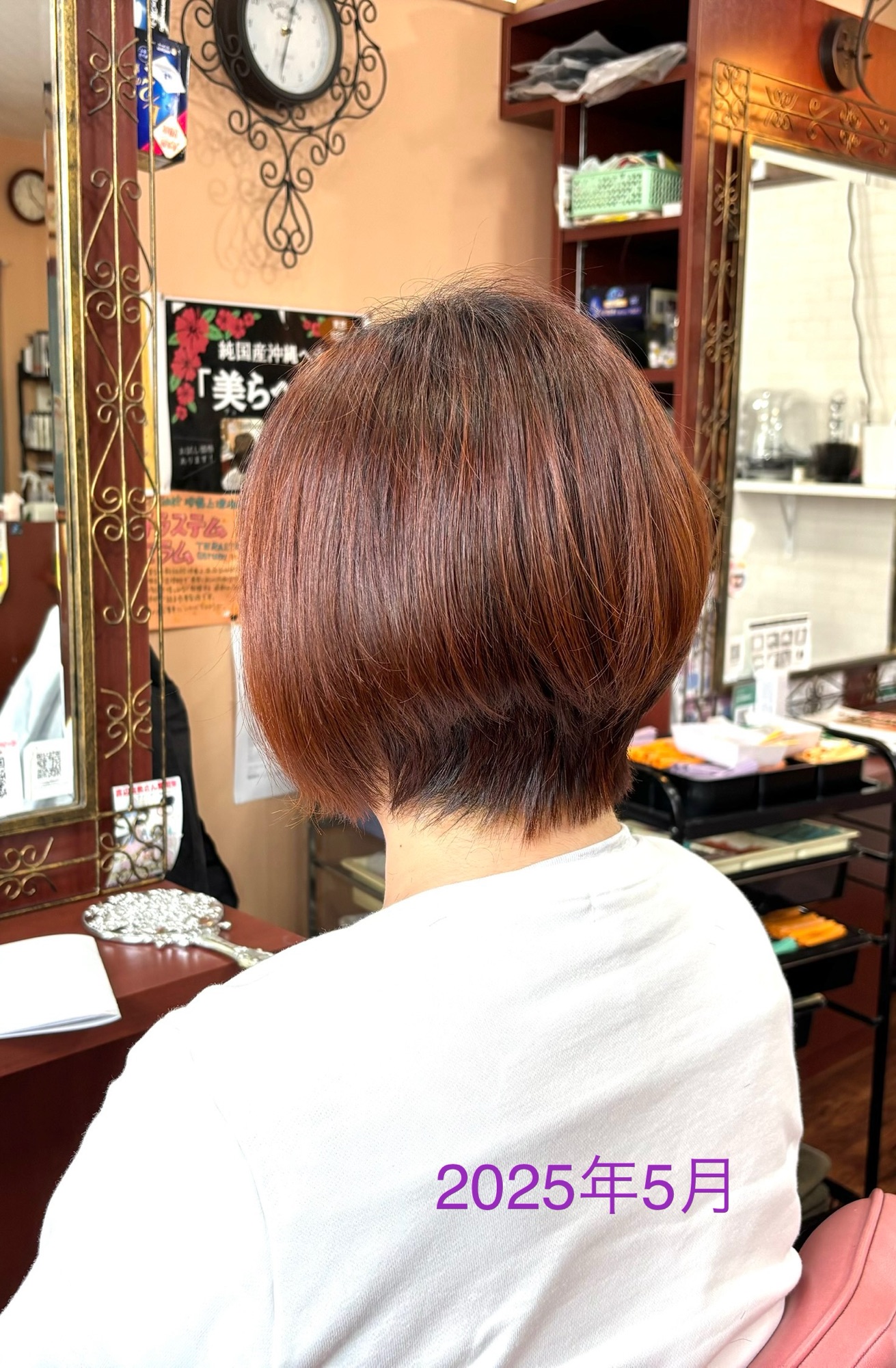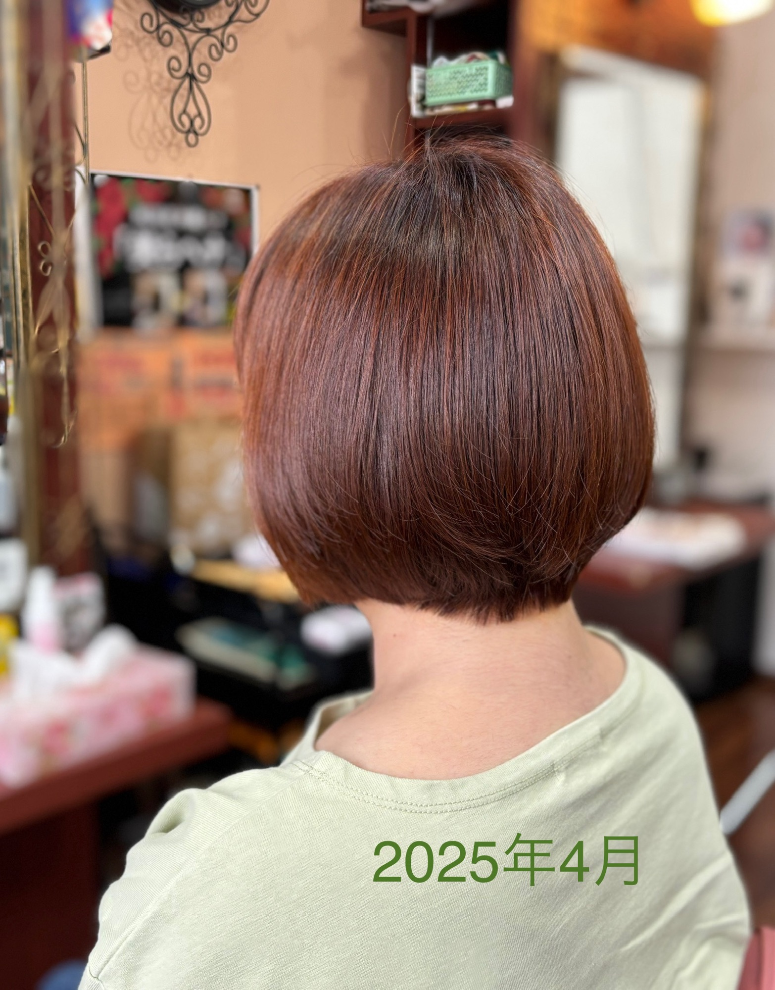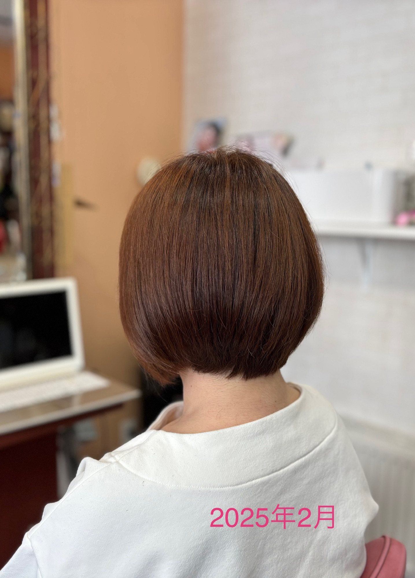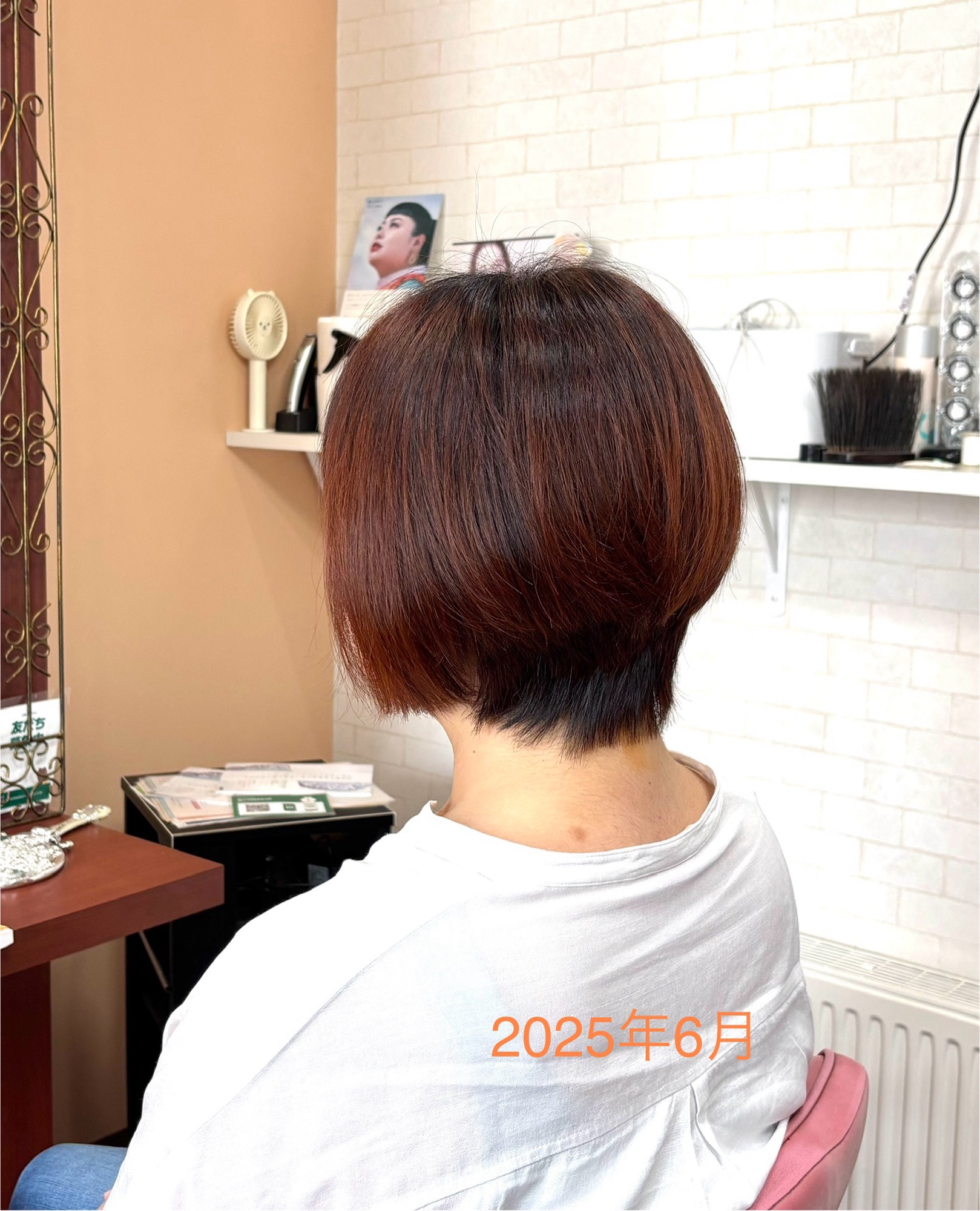 フロント、サイドの部分の白髪のところがメッシュを入れたように、色が立体感を出してヘアスタイルとよくマッチしてきました♪。