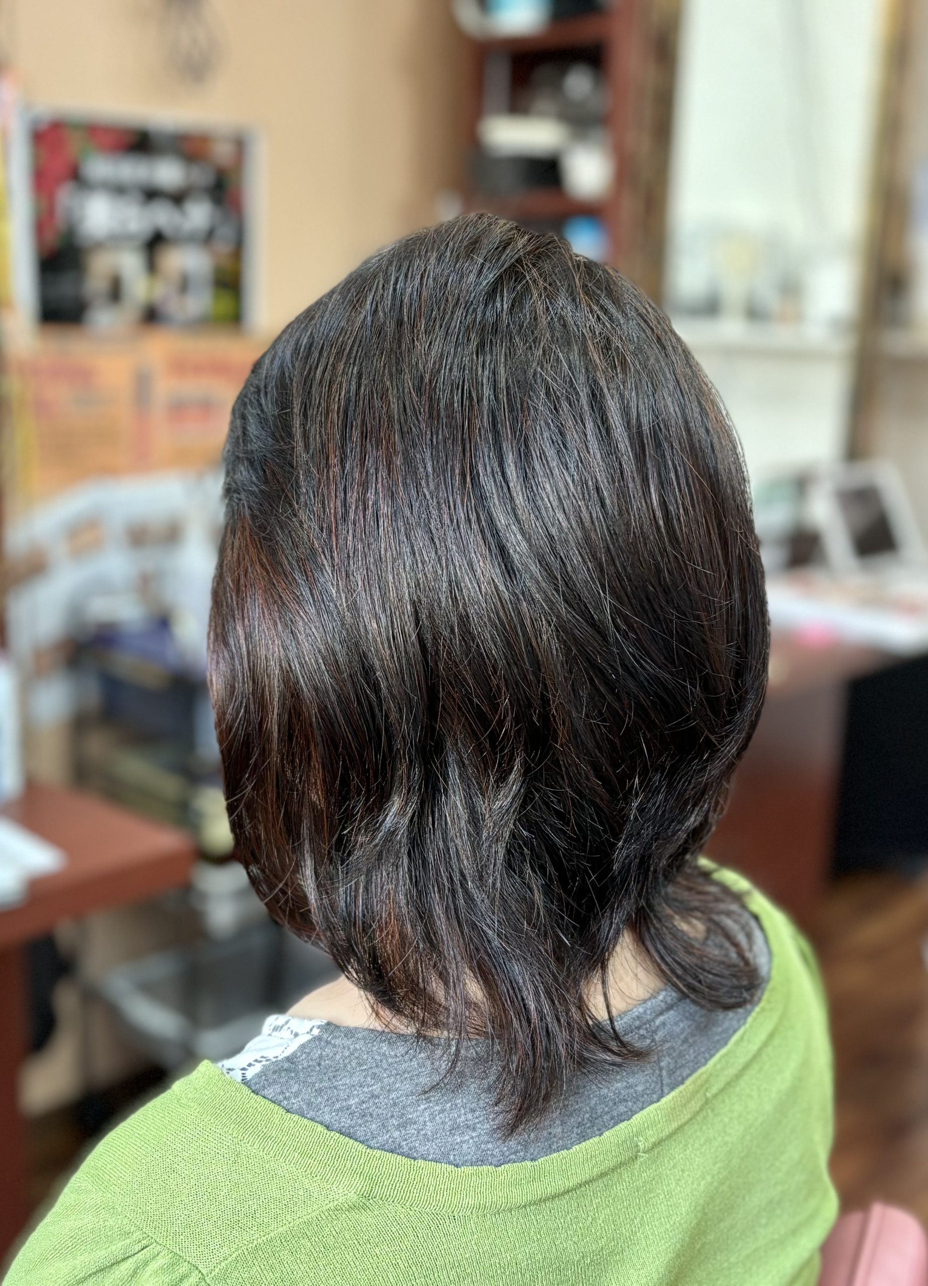 カットしながら徐々に今までのカラーの色を無くして、全部ヘナカラーの色になるのが楽しみ😊です