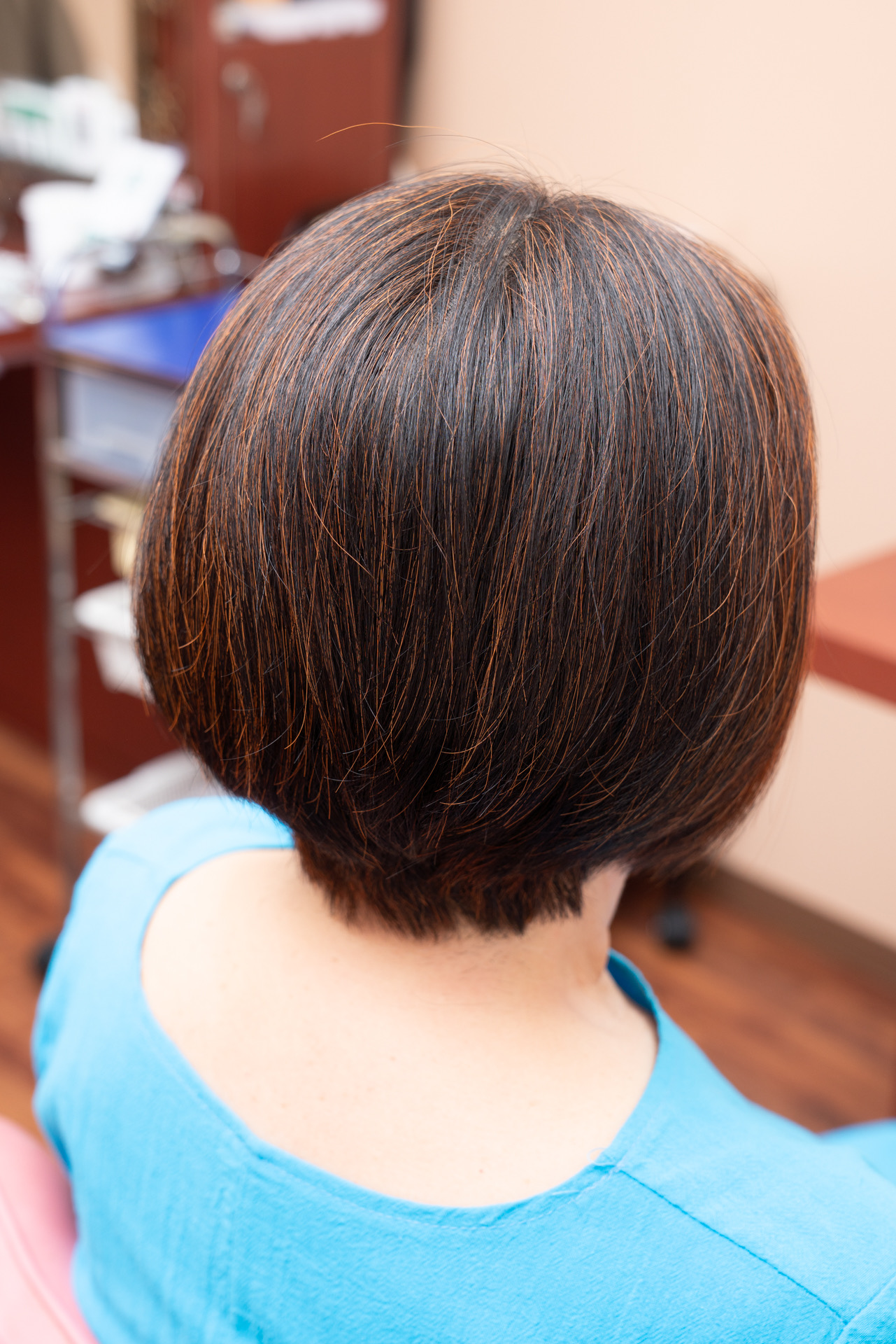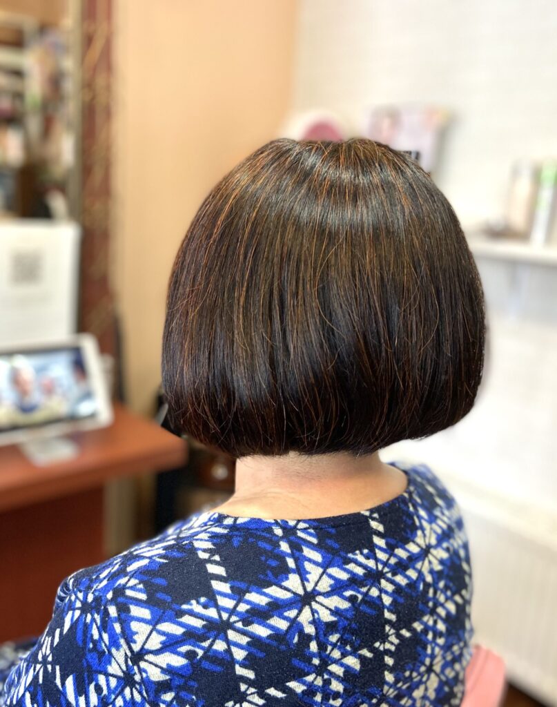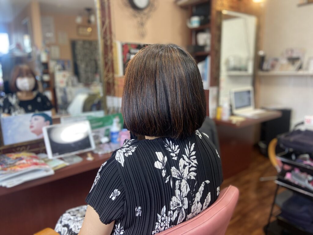 今回は今までよりも短くしてみました。前回も襟足のあたりをスッキリさせると、とても楽だったそうで、『もう少し切るともっと楽ですよ!』とお伝えすると『そうしてください』との事で、チャレンジしてもました。