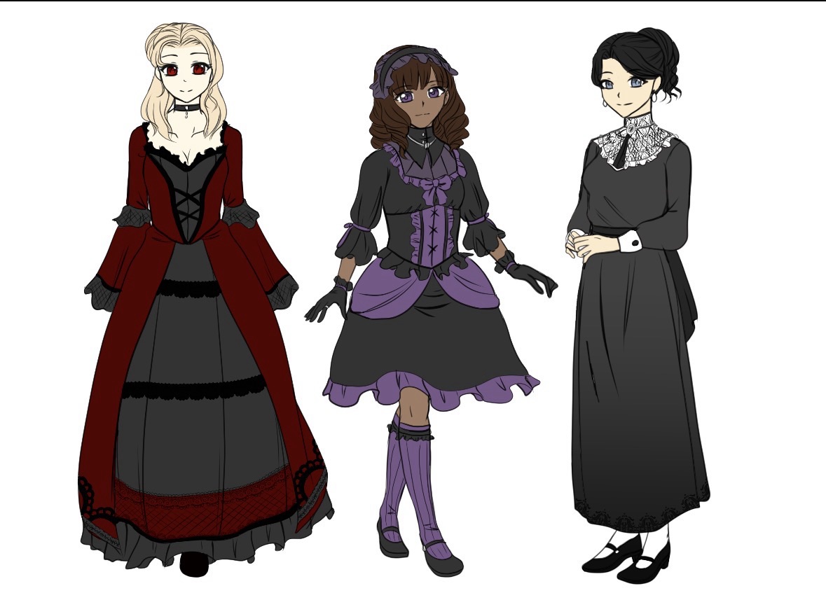 黒・深紫・ボルドーなどの暗色系 十字架、薔薇、教会、棺などのモチーフ フリルやレースは多いが「甘すぎない」 「可愛い」よりも 気高い・儚い・耽美・退廃的な美