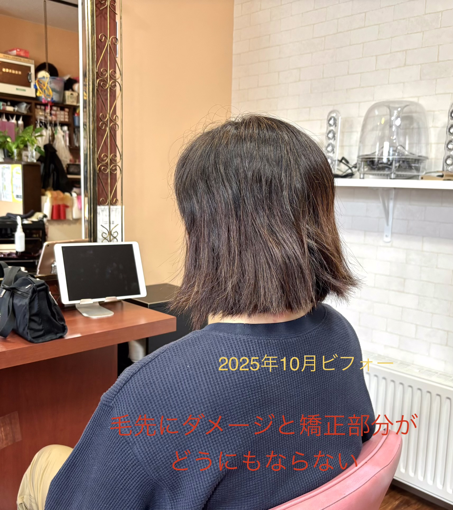ずーっと縮毛矯正とヘアカラーで髪の状態がかなりダメージを受けてのご来店でした。