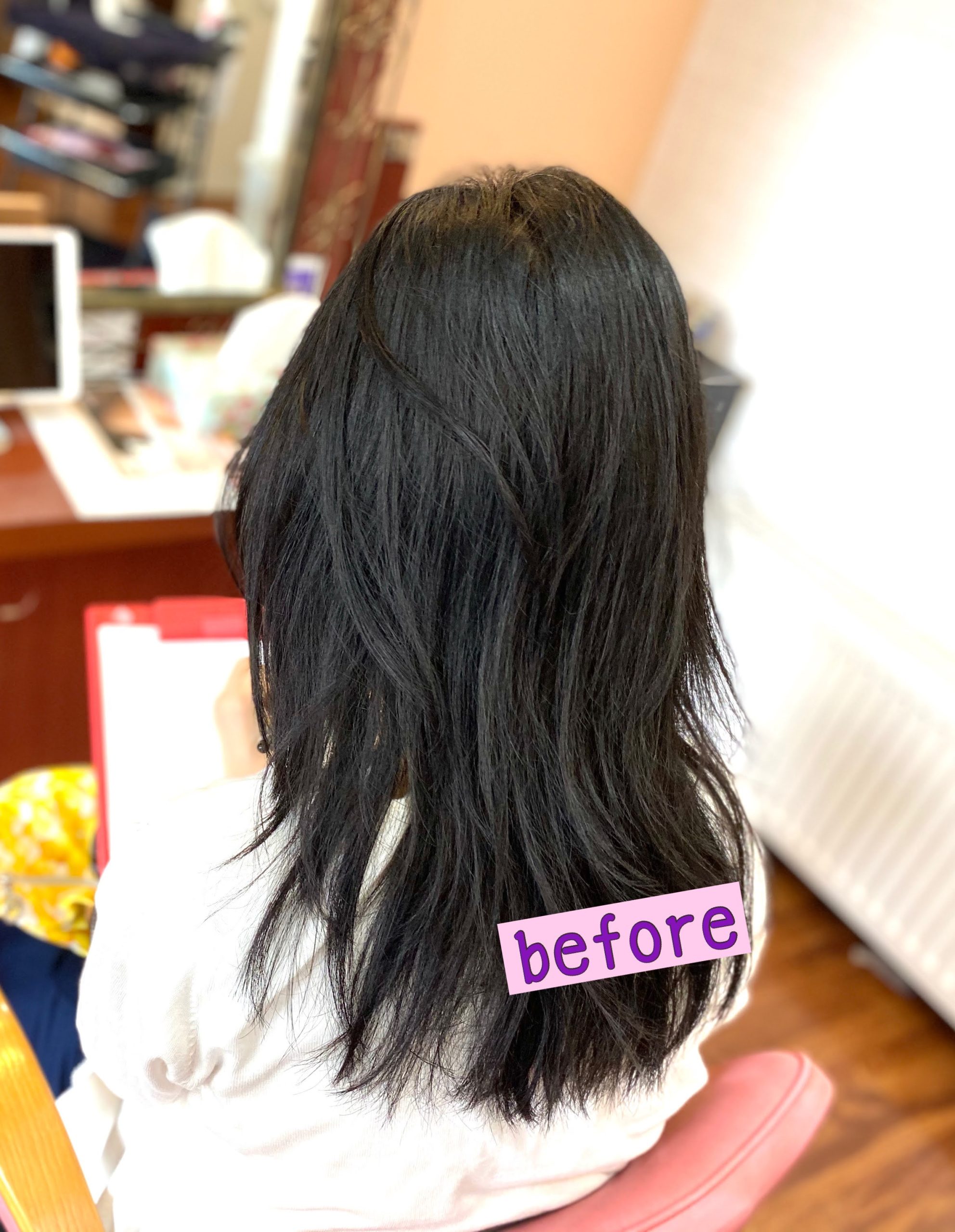 面長さんでもありますが、襟足の上がる⤴️生えてくせもあり、当店にくる前は、ロングスタイルでした。